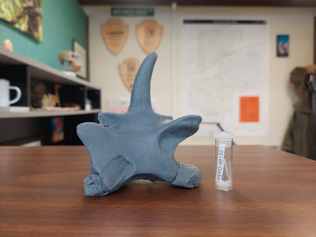 The process of matrix sorting is tedious — for example, with Funcusvermis gilmorei, two tons of sediment was collected and one Funcusvermis gilmorei jawbone was found every 32 pounds, according to PEFO Paleontologist Adam Marsh.