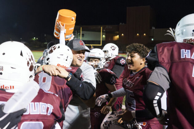 Coyotes celebrate winning the Northern Arizona Youth Football Majors championship between Camp Verde Coyotes and Mingus Mountain Marauders at Sedona Red Rock High School on Saturday, Nov. 8.