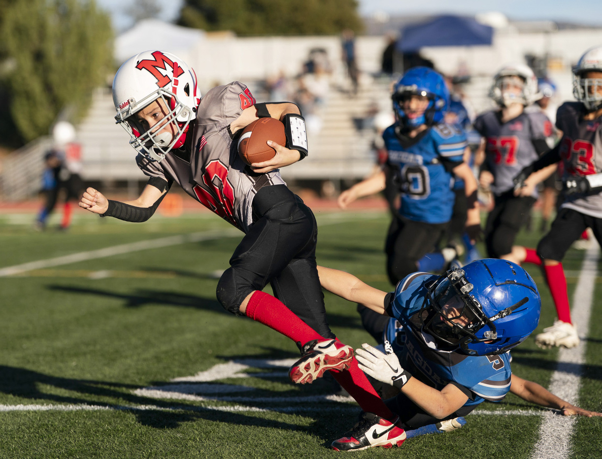 - Coyotes Kaycen Dubs (no. 2) runs through Marauders Calin Christopher (no. 00) during the Northern Arizona Youth Football Majors championship between Camp Verde Coyotes and Mingus Mountain Marauders at Sedona Red Rock High School on Saturday, Nov. 8.