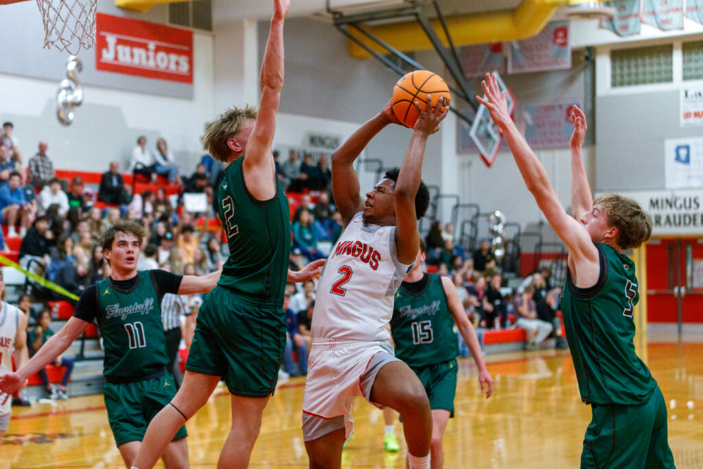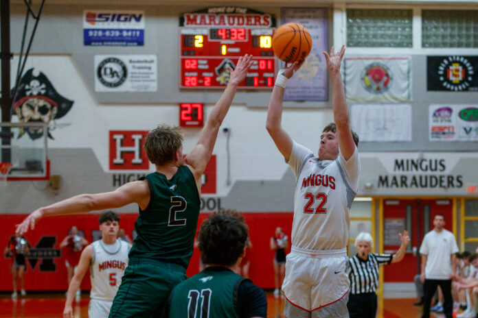 After losing to the No. 3-ranked Prescott Badgers on Feb. 9, the Mingus Union High School boys basketball team won its last home game of the season against the Flagstaff Eagles 57-51, maintaining the Marauders No. 2 spot in the conference.